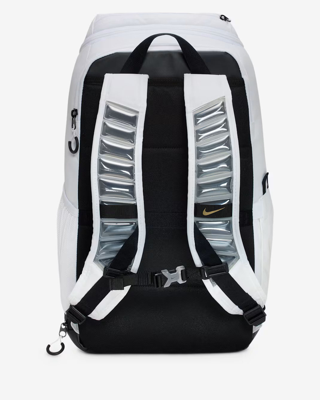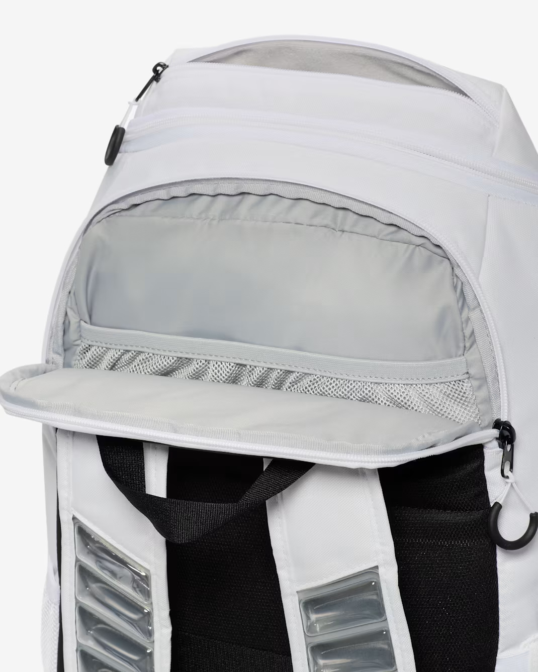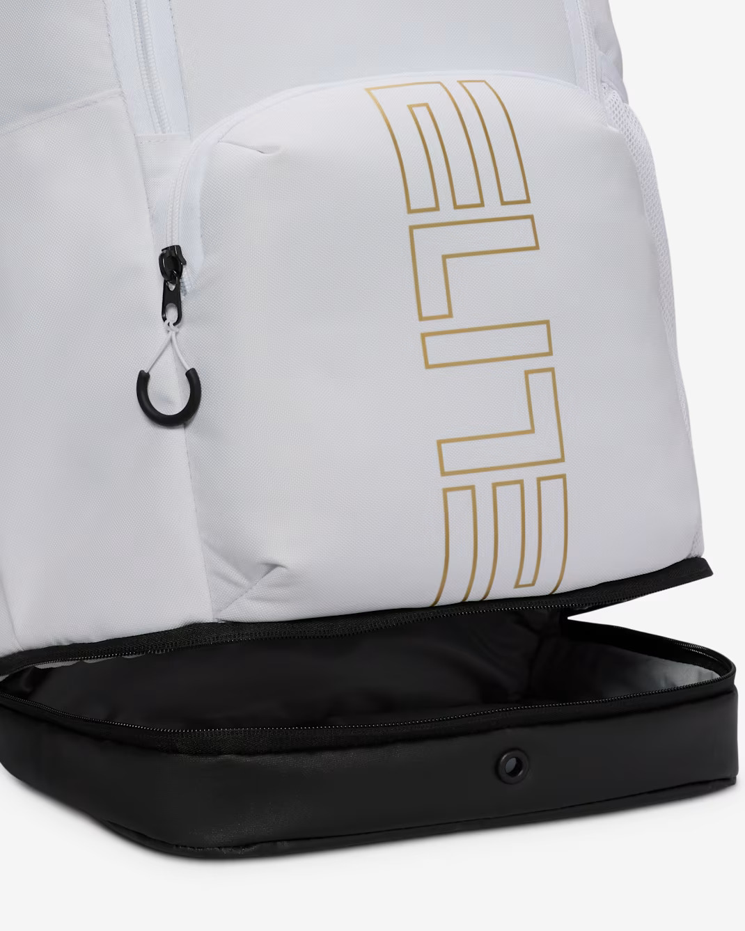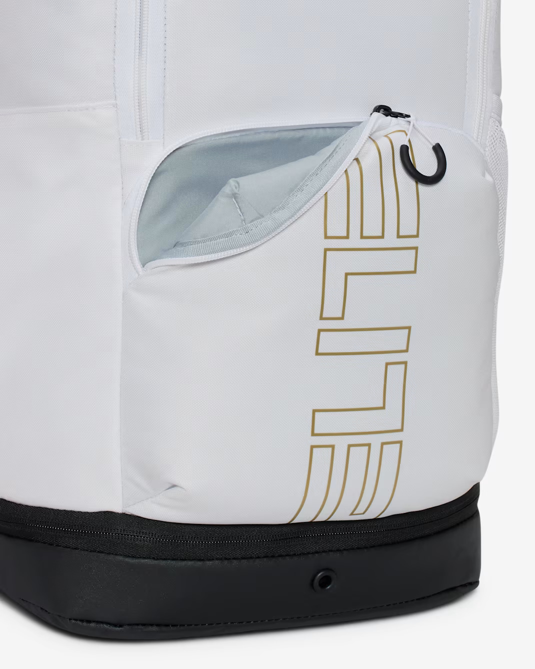 Рюкзак Nike Varsity Elite вміщує все необхідне для гри в баскетбол і подорожей. Просторе основне відділення здатне розмістити баскетбольний м’яч повного розміру. Зовнішня передня кишеня забезпечує швидкий доступ до дрібних речей, а нижнє відділення призначене для зберігання взуття чи вологого одягу, відокремлюючи їх від основних речей.
