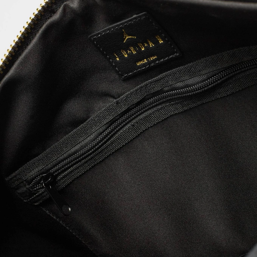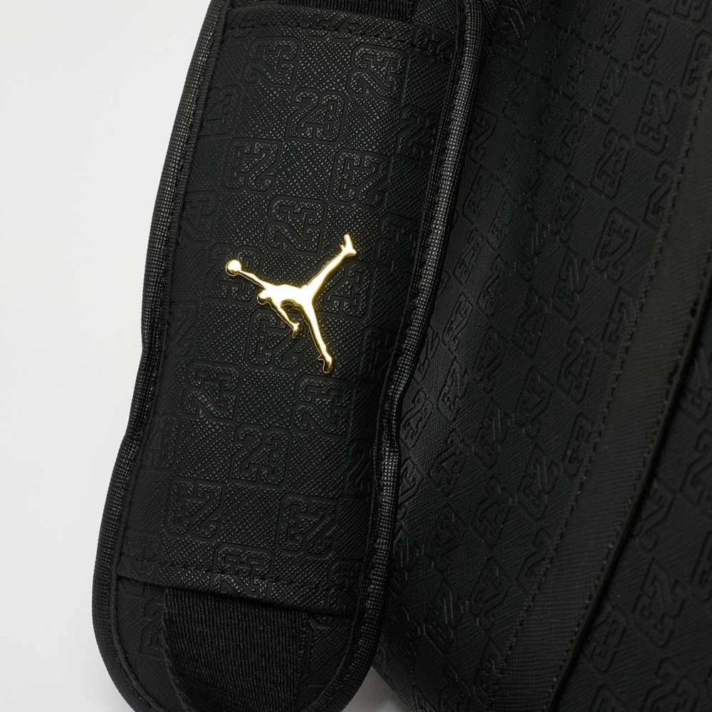 - Сумка вирізняється унікальним монограмним принтом із логотипом 23 Jordan, що підкреслює її приналежність до культового бренду.